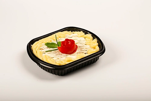 Un preparat emblematic al bucătăriei românești, salata boeuf combină cubulețe fine de legume fierte (cartofi, morcovi, mazăre) cu carne fragedă de vită sau pui, legate într-un strat cremos de maioneză și acompaniate de murături tăiate mărunt. Decorată festiv, este o alegere perfectă pentru mese de sărbătoare sau evenimente speciale.