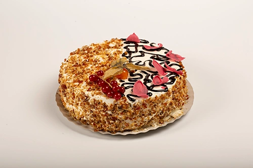 Un tort sofisticat ce îmbină textura fină a cremei de mascarpone cu savoarea intensă a caramelului crocant. Blaturi pufoase, alternate cu straturi de cremă delicată pe bază de mascarpone și frișcă naturală, totul desăvârșit cu un strat generos de krantz – nucă prăjită caramelizată. Un desert echilibrat, potrivit pentru momente speciale și gusturi pretențioase.